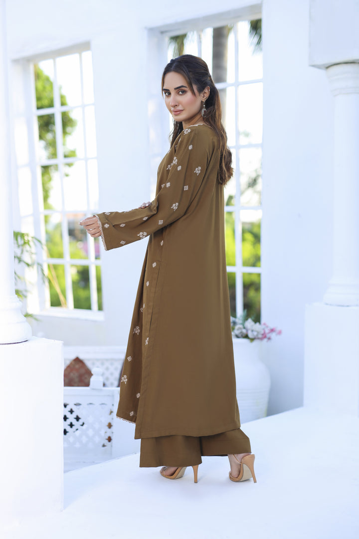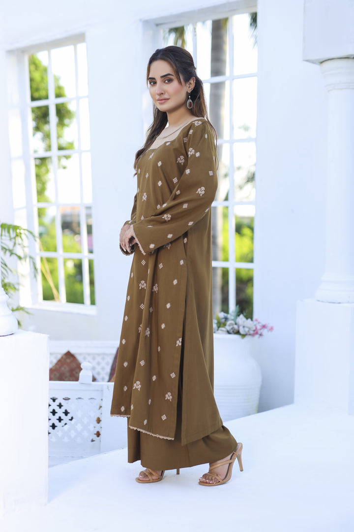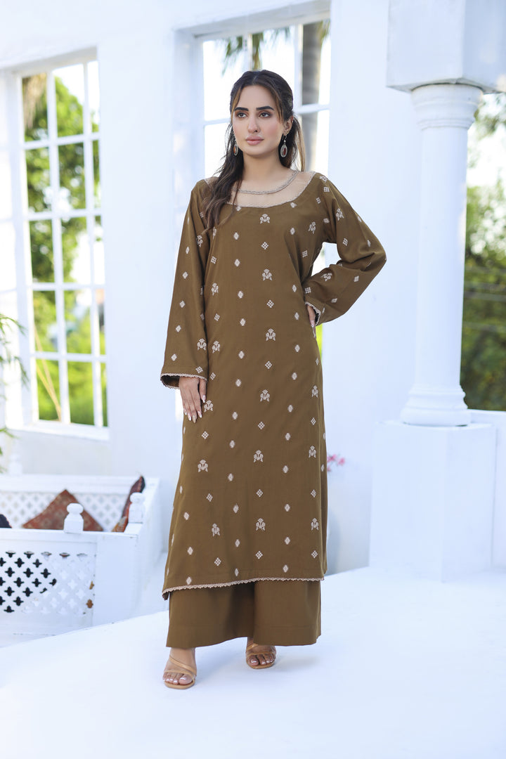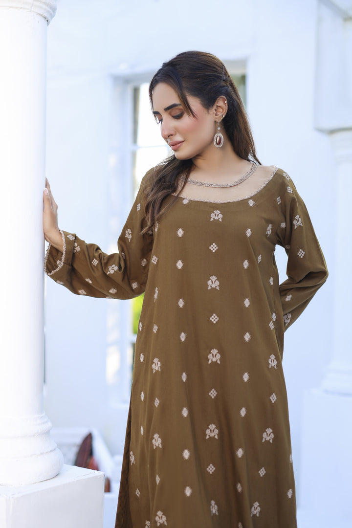 Khakeeza - 2 Piece Embroidered Dhanak Dress